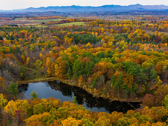 This incredible property has it all: spectacular panoramic Catskill mountain views and sunsets; a beautiful, serene, deep spring-fed lake; and miles of roads and trails all within minutes of thriving Hudson. … The panoramic views are of the Catskill and Helderberg mountains and all the way to the Albany skyline and beyond. The beautiful lake can be used for swimming, fishing, ice skating, and nature watching. The roads and trails are suitable for horseback riding, four-wheeling, dirt-biking, and mountain biking through open wildflower meadows, mature woods, along old stone walls, around natural small-scale wetlands, and over streams with rustic bridges. Or the trails can be used for the enjoyment of simply walking or jogging on picturesque land in peace and quiet. The property adjoins 500 acres of Won Dharma Center conservation lands, that also have extensive walking trails. Proposed as a housing development that was approved in 1989, valuable initial infrastructure has been constructed including seven stone crafted culverts, mile-long engineered roads with 15 house sites (each with its own Tax Map Number), and three drilled wells. Just minutes to Hudson, it is close to shopping, fine dining, culture, services, and transportation, yet only two hours to New York City or two and a half to Boston.