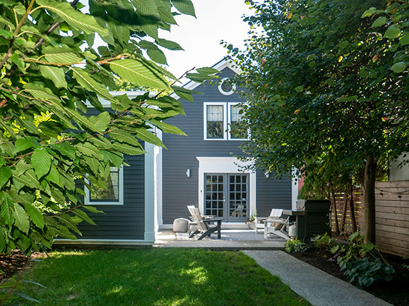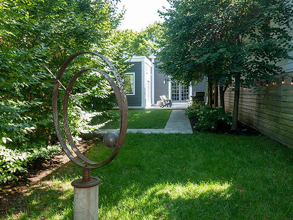 The handsome design features high ceilings, French doors and wideboard floors. The elegant sunlit living room, with a beautiful gas fireplace, leads to the ample dining room, which opens to the courtyard patio on one side, and on the other side, the stunning cook's kitchen equipped with high-end stainless appliances, soapstone counters and marble-topped island. The first floor includes a spacious primary bedroom with all new luxurious bath en suite with large soaking tub and spectacular shower. Upstairs are two additional bedrooms with vaulted ceilings and a marble shower bath. The house has central air, gallery lighting, first floor laundry and powder room, all house generator and radiant heated patio and walkway. A beautiful refined modern oasis, yet walk to Hudson shops, restaurants, farmers market, library, riverfront, Amtrak. An ideal location and home.