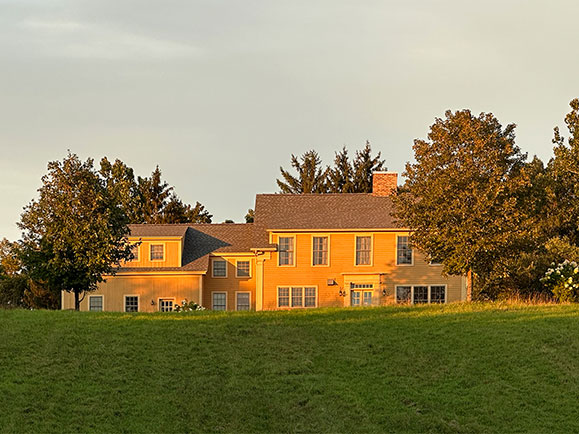 Up a long driveway and high on a knoll, surrounded by conserved farmland, this commanding home has the best of all worlds. Designed by Conner Historic from Vermont and built in 2007, it has modern conveniences, yet traditional design, with the peaceful private site chosen for beautiful views of the countryside, Catskill Mountains, and sunsets.