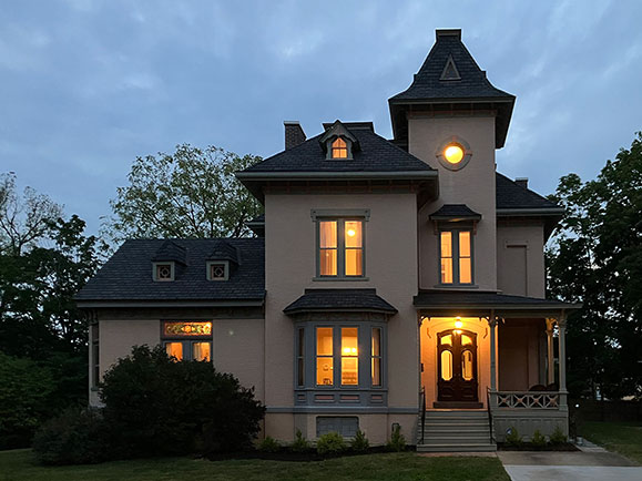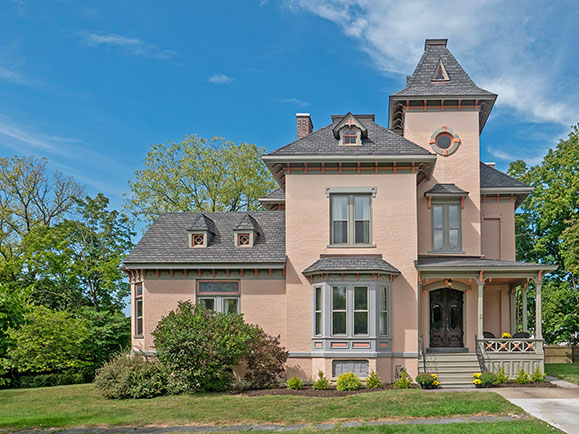 Located on the most prestigious street in Hudson, the Samuel Edwards house is a striking example of Hudson Valley Italianate architecture. The refined villa was built in the 1870s at Willard Place, an early planned residential enclave of historic stately homes in the heart of Hudson. … The impressive brick house with a three-story central tower and one-story wing retains many 19th century details from the rich paneled woodwork, dramatic three-story open and curved staircase, stained glass windows, high cove ceilings, parquet wood floors and pocket doors. The living room, dining room, and library have beautiful fireplace mantels. The library has an exceptional coffered ceiling, wonderful bookcases and 19th century tiles surrounding the fireplace. The large, eat in kitchen has cherry cabinets, handsome ceiling, a tile floor and a door to the back porch. There is a convenient, first floor vintage half bath tucked in beneath the staircase. The second floor has three bedrooms, a large bathroom with shower and an additional room that could serve as an office or space for another bath. The third floor has a full bath, a fourth bedroom and another large room, both with views of the Hudson River and the Catskill Mountains, and could be great studio, additional living or workspace. The enchanting third floor tower room, with original round windows, is a perfect small work or meditative space. A full basement with a half bath and laundry has a workshop and a garage. Outside, bracketed cornice, ornamental window surrounds and a distinctive roof pierced by miniature dormers add character. Sited on nearly an acre, there is ample room for a pool or lovely period gardens. Listed on the National Register, the home may be eligible for historic rehabilitation tax credits. Only steps away from Hudson's best restaurants, cafes, bakeries, shops, galleries and the Farmer's Market; a short walk to the Hudson Riverfront Park and Amtrak station; only two hours to NYC. Come experience all that Hudson and the upstate lifestyle has to offer while living in the finest example of 19th century architecture.
